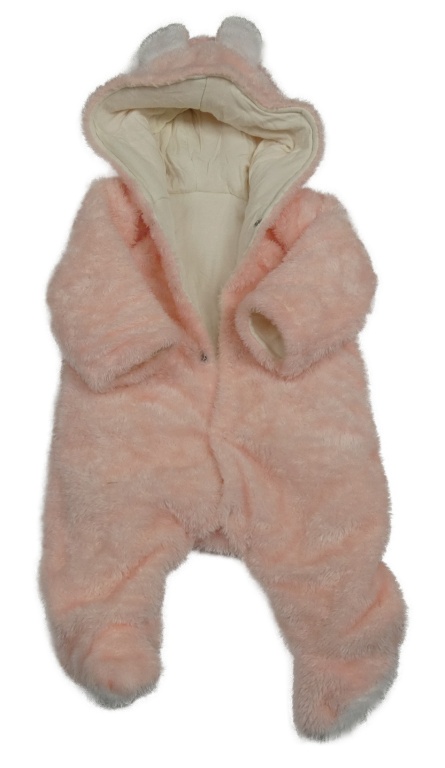 Růžová chlupatá zateplená kombinéza s kapucí s oušky