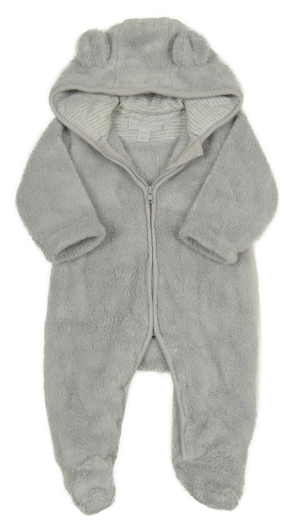 Světlešedá chlupatá kombinéza s kapucí