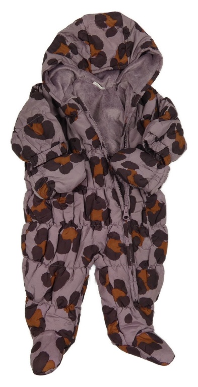 • Fialová vzorovaná šusťáková zimní kombinéza s kapucí + rukavice Next