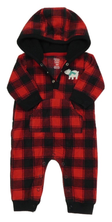 • Černo-červená kostkovaná fleecová kombinéza s medvídkem a kapucí Carter´s