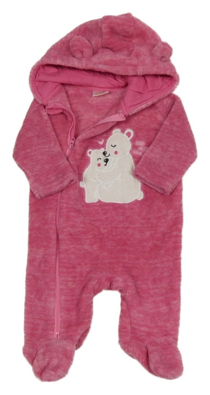 Růžová melírovaná chlupatá kombinéza s medvědy a kapucí