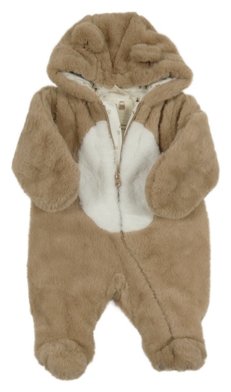 • Hnědo-bílá kožešinová zateplená kombinéza s kapucí s oušky