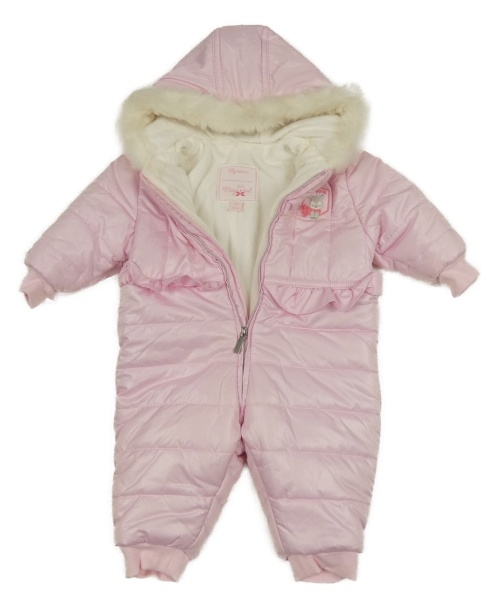 Růžová šusťáková zimní kombinéza s výšivkou a kapucí Mayoral