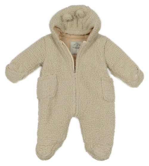 Světlebéžová huňatá zateplená kombinéza s kapucí s oušky George