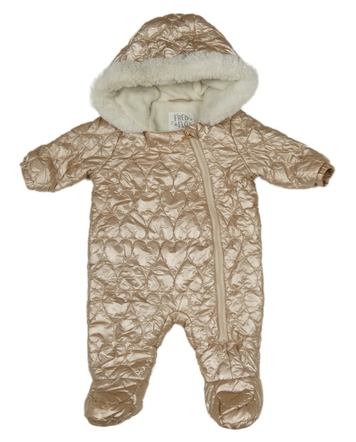 Bronzová prošívaná šusťáková zimní kombinéza s kapucí F&F