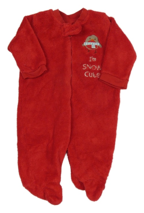 Červená plyšová kombinéza s ptáčkem Matalan
