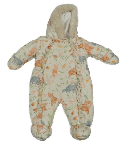 Béžová šusťáková zimní kombinéza se zvířaty a kapucí George