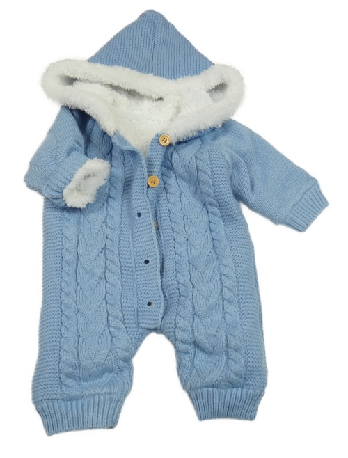 • Modrá pletená zateplená kombinéza se vzorem a kapucí SHEIN