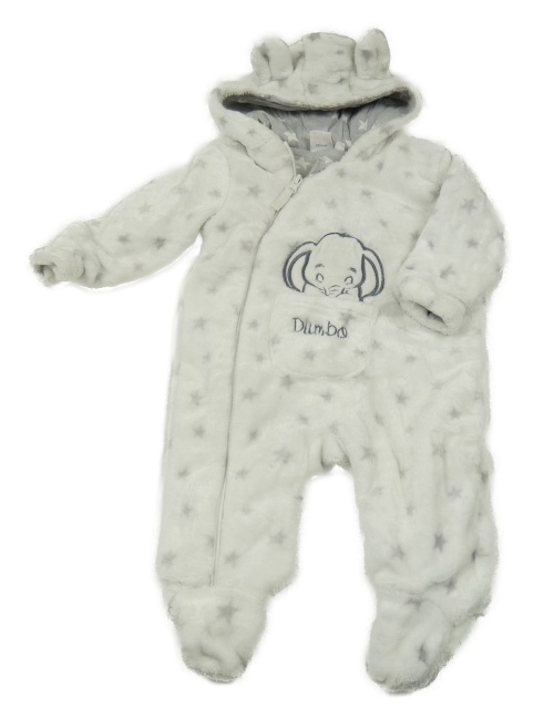 Bílo-šedá plyšová podšitá kombinéza s Dumbem a kapucí Disney