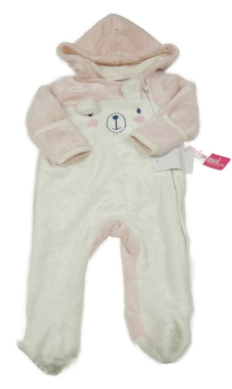 Nové - bílo-světlerůžová plyšová kombinéza s medvědem a kapucí