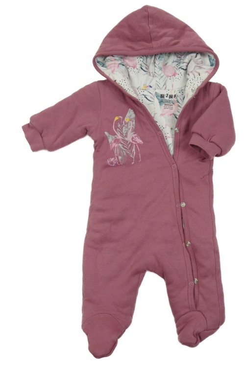 Vínová zateplená kombinéza s plameňáky a kapucí