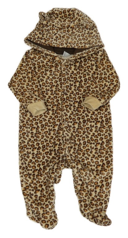 Hnědo-béžová leopardí sametová kombinéza s kapucí