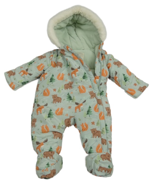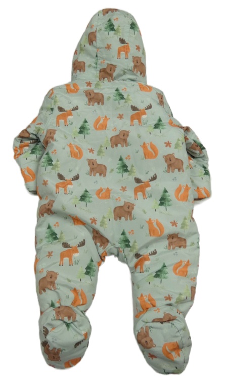 Světlezelená šusťáková zimní kombinéza se zvířátky a kapucí Tu