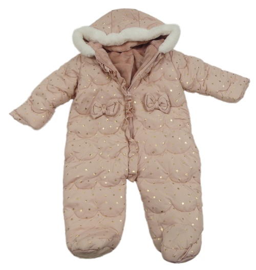 Světlerůžová šusťáková zimní kombinéza s hvězdičkami a kapucí Matalan