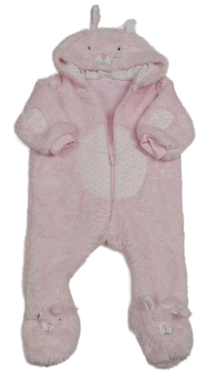 Růžová chlupatá kombinéza s kapucí - králík F&F