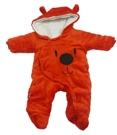 • Červená chlupatá zateplená kombinéza s čumákem a kapucí