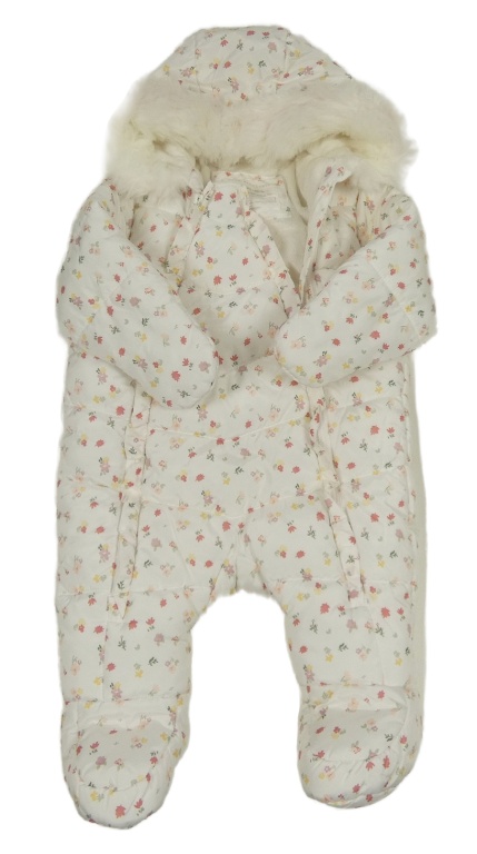 Bílá šusťáková zimní kombinéza s kytičkami a kapucí Primark