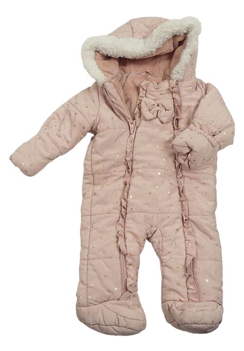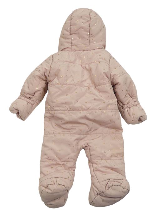 Světlerůžová šusťáková zimní kombinéza s hvězdičkami a kapucí Matalan