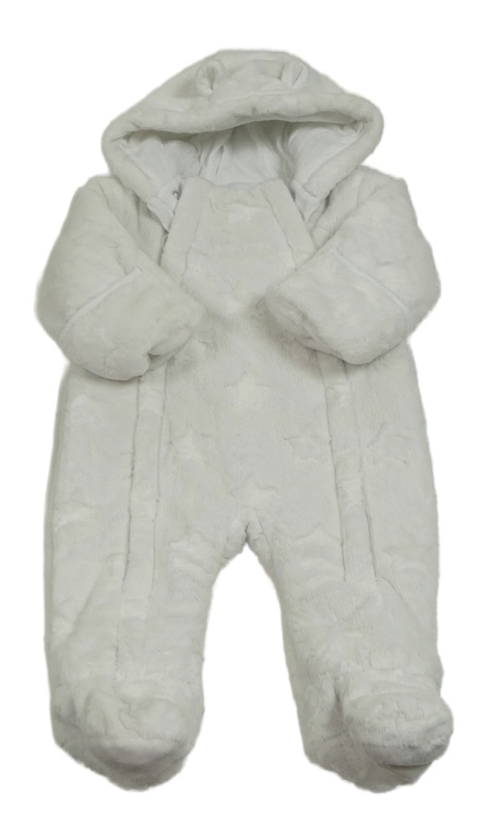 Bílá chlupatá zateplená kombinéza s hvězdami a kapucí George