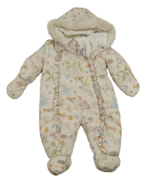 Smetanová šusťáková zimní kombinéza s obrázky a kapucí George