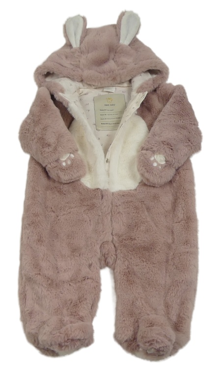 Světlerůžová kožešinová podšitá kombinéza s kapucí a oušky Next