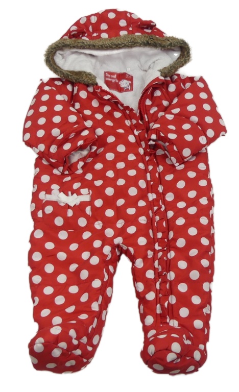Červená puntíkatá šusťáková zimní kombinéza s kapucí Tu