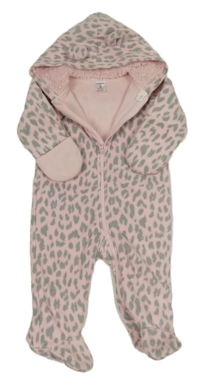 Světlerůžovo-šedá vzorovaná fleecová podšitá kombinéza s kapucí Carters