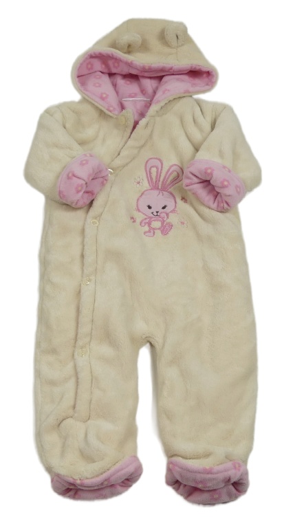 Smetanová chlupatá zateplená kombinéza s králíčkem a kapucí Ergee
