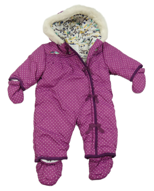 Růžová šusťáková zimní kombinéza s puntíky a kapucí Miniclub