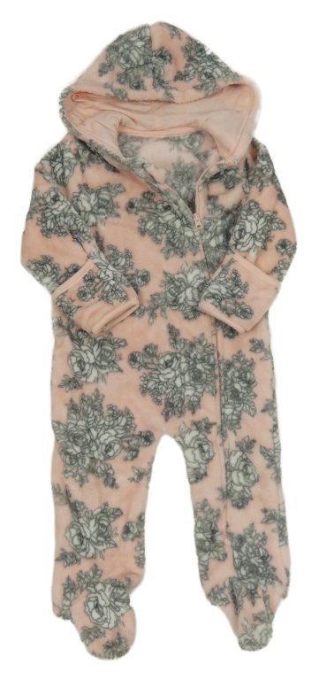 Růžovo-šedá květovaná plyšová kombinéza s kapucí