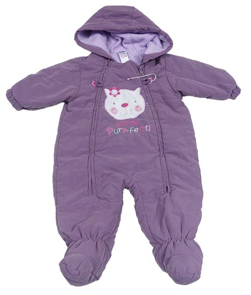 Fialová šusťáková zimní kombinéza s kočičkou a kapucí M&Co.
