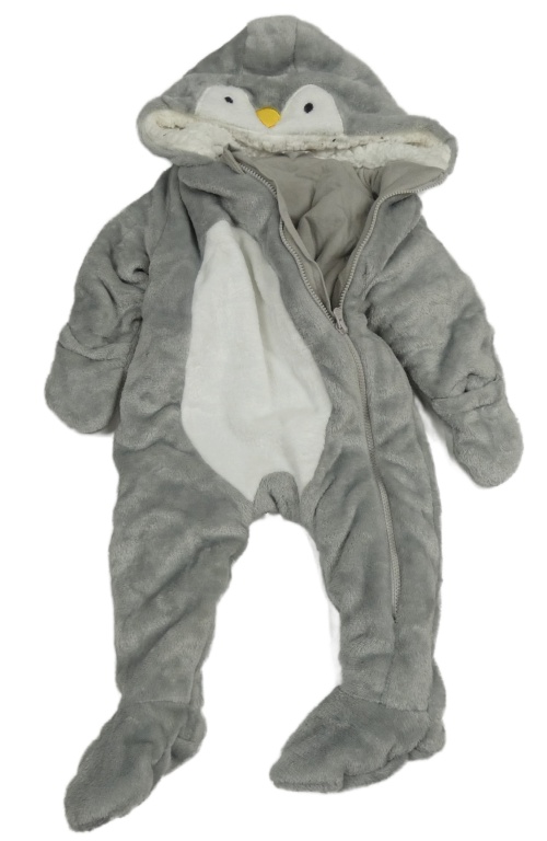 • Šedá kožešinová zateplená kombinéza s kapucí - tučňák M&Co.