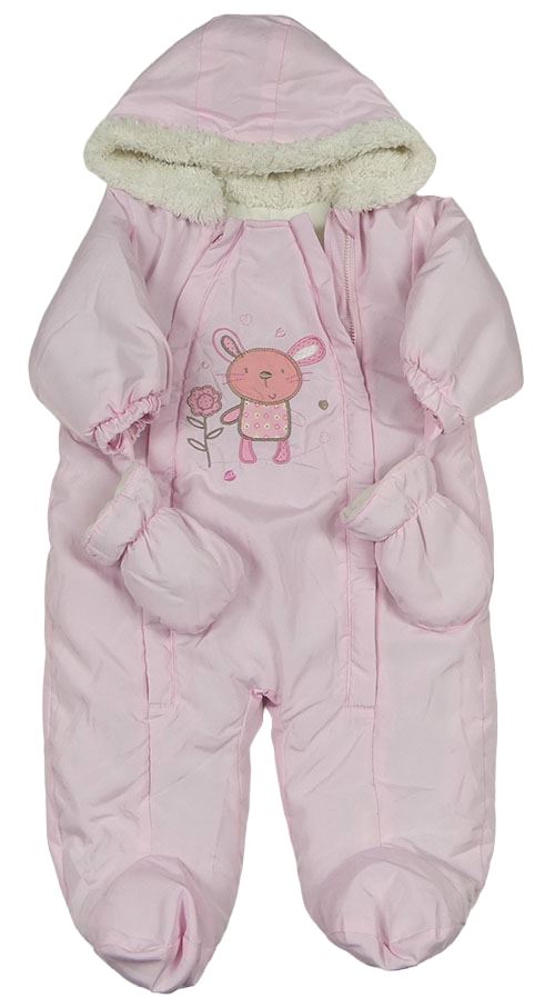 Světlerůžová šusťáková zimní kombinéza se zajíčkem a kapucí s kožešinou + rukavice Matalan