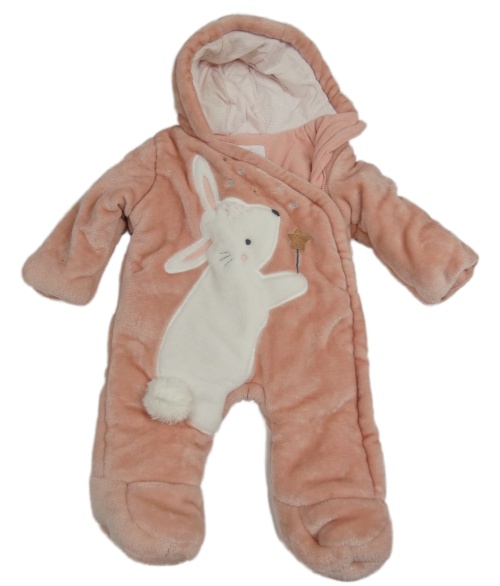 Růžová kožešinová zateplená kombinéza se zajíčkem a kapucí F&F
