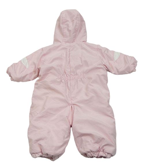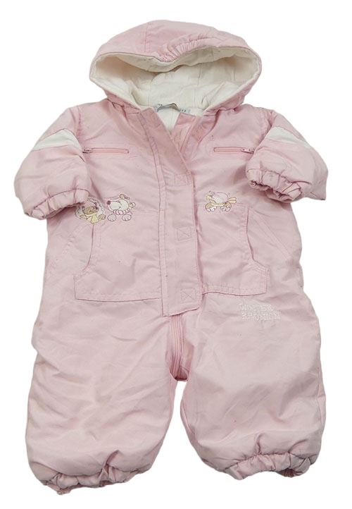 Světlerůžová šusťáková zimní kombinéza s medvídky a kapucí
