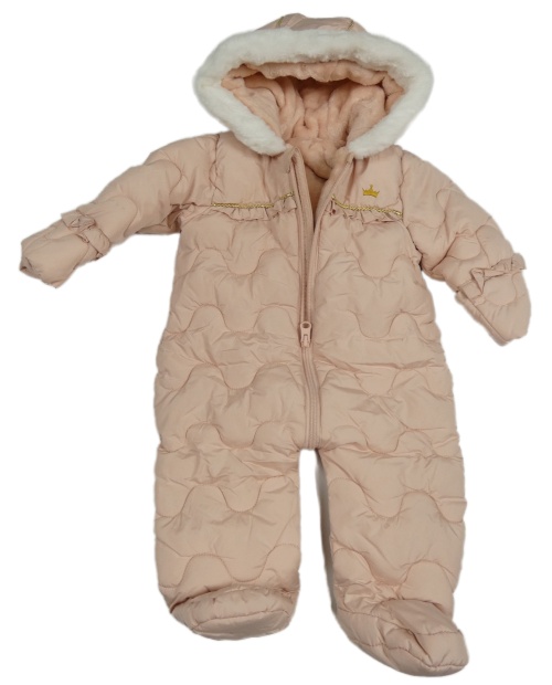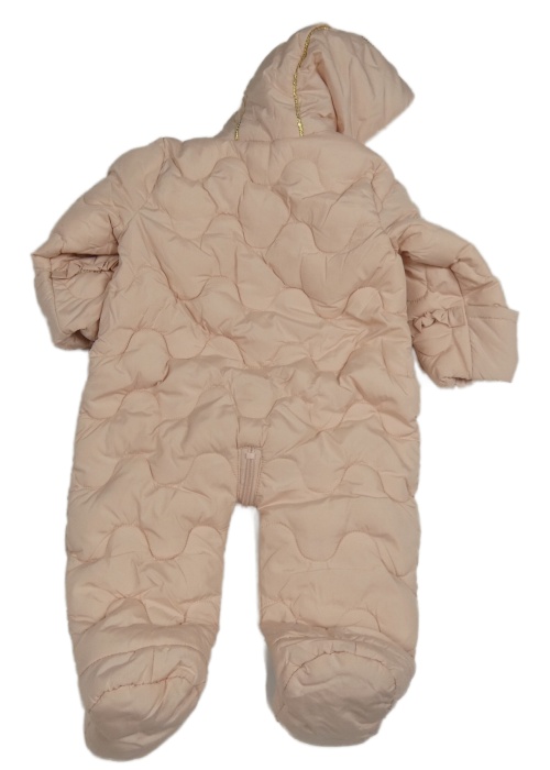 Světlerůžová šusťáková prošívaná zimní kombinéza s korunkou a kapucí
