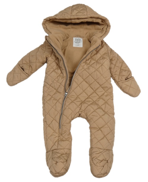 • Světlehnědá prošívaná šusťáková zimní kombinéza s kapucí F&F