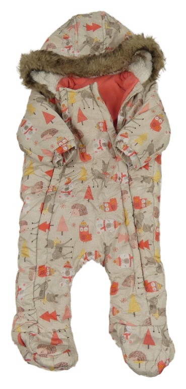 Béžová šusťáková zimní kombinéza se zvířaty a kapucí F&F