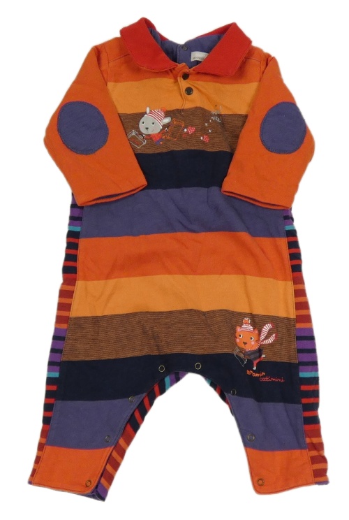 • Pruhovaná zateplená kombinéza se zvířátky a límečkem catimini