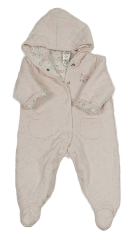 Světlerůžová bavlněná prošívaná zateplená kombinéza s kapucí Little me