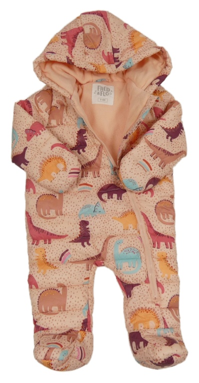 Meruňková šusťáková zimní kombinéza s dinosaury a kapucí F&F