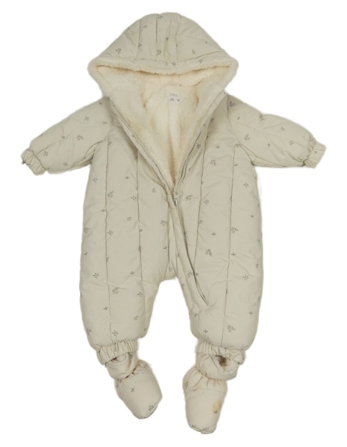 Smetanová vzorovaná šusťáková zimní kombinéza s kapucí Zara