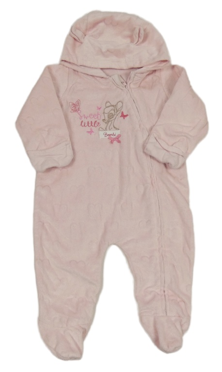 Růžová plyšová podšitá kombinéza s Bambim a kapucí George