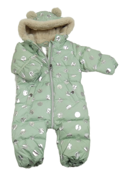 Zelenkavá puntíkatá šusťáková zimní kombinéza s kapucí Next