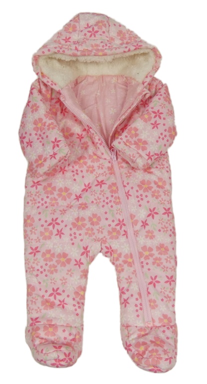 Růžová květovaná manšestrová zateplená kombinéza s kapucí Dunnes