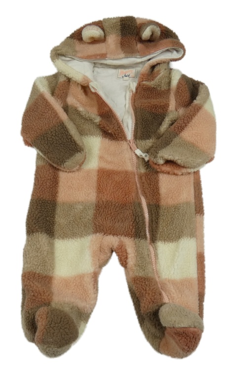 Růžovo-hnědo-bílá kostkovaná huňatá podšitá kombinéza s kapucí Mantaray
