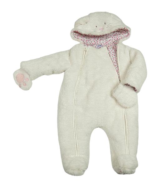 Bílá chlupatá zateplená kombinéza s kapucí + rukavice Jojo Maman Bébé