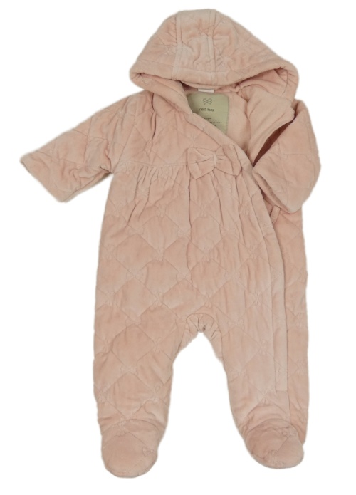Světlerůžová plyšová zateplená kombinéza s mašličkami a kapucí Next