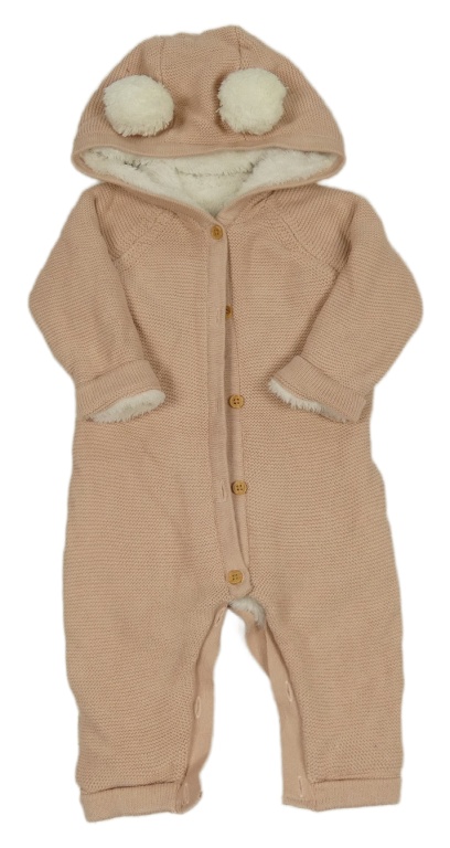 Světlerůžová pletená zateplená kombinéza s kapucí Tu