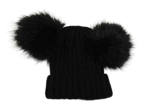 Černá pletená čepice s bambulemi
